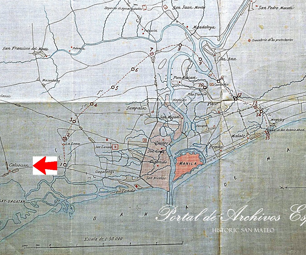 From Blockhouse No. 1 (right of red arrow), the advance was made on Caloocan, February 10, 1899 (left of red arrow)