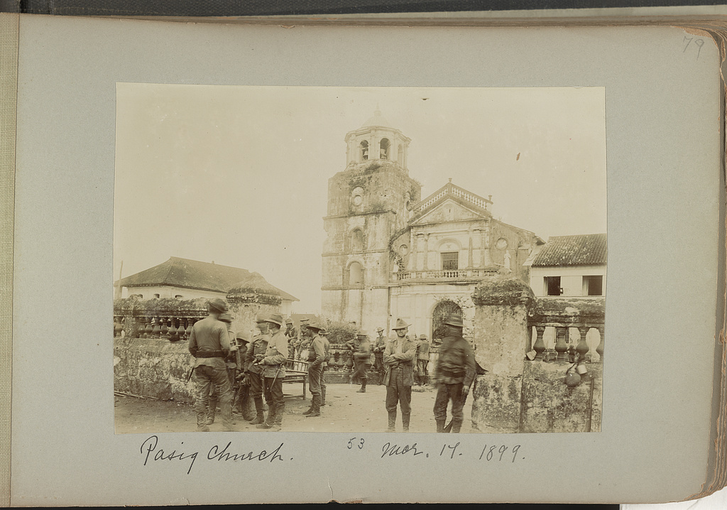 American soldiers at Pasig Church, Pasig City, Manila, Philippines, March 17, 1899