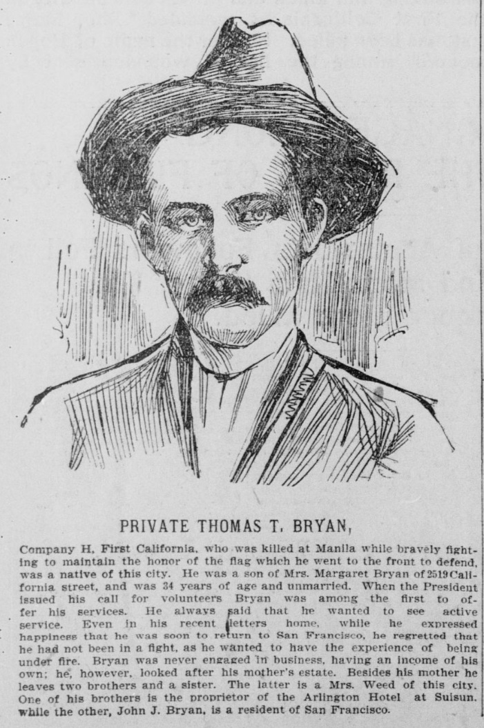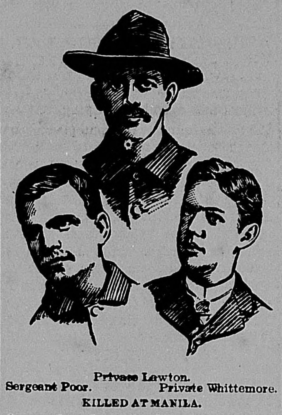 April 9, 1900.—Three soldiers of Company B, Thirteenth U. S. Infantry, are fired upon by ladrones near San Manuel, P. I., and 1 ladrone is killed.