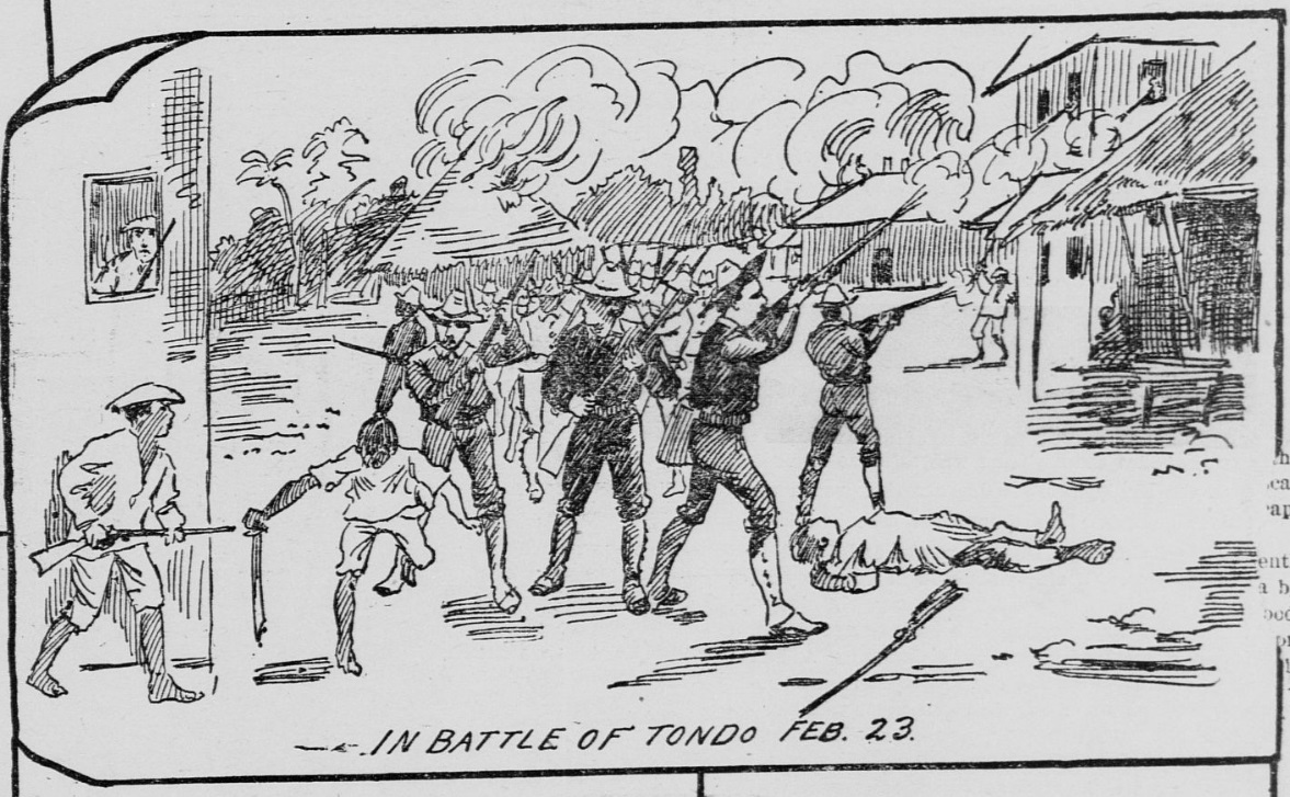February 27, 1900.—Companies C and D, Fortieth Infantry, U. S. V., under Maj. M. M. McNamee, attack the insurgents 4 miles from Tigaon, P. I., and finally dislodge them from their sheltered position, killing 7 and wounding a number. The United States forces lose 1 man killed and 3 wounded.