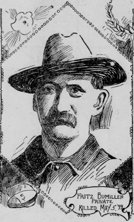Fred J Pegler, I 1st Nebr, killed in action, Feb 4 1899. Grave